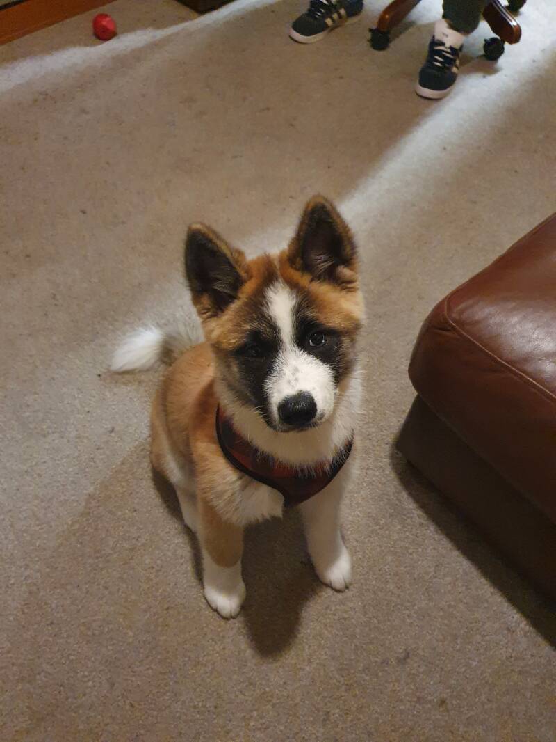 Here is a beautiful 3 month old Akita pup (Luna) who recently received some of this basic training. Remember at this stage less is more.